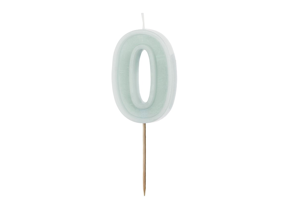 Świeczka urodzinowa Figurka 0 w kolorze jasno miętowym.