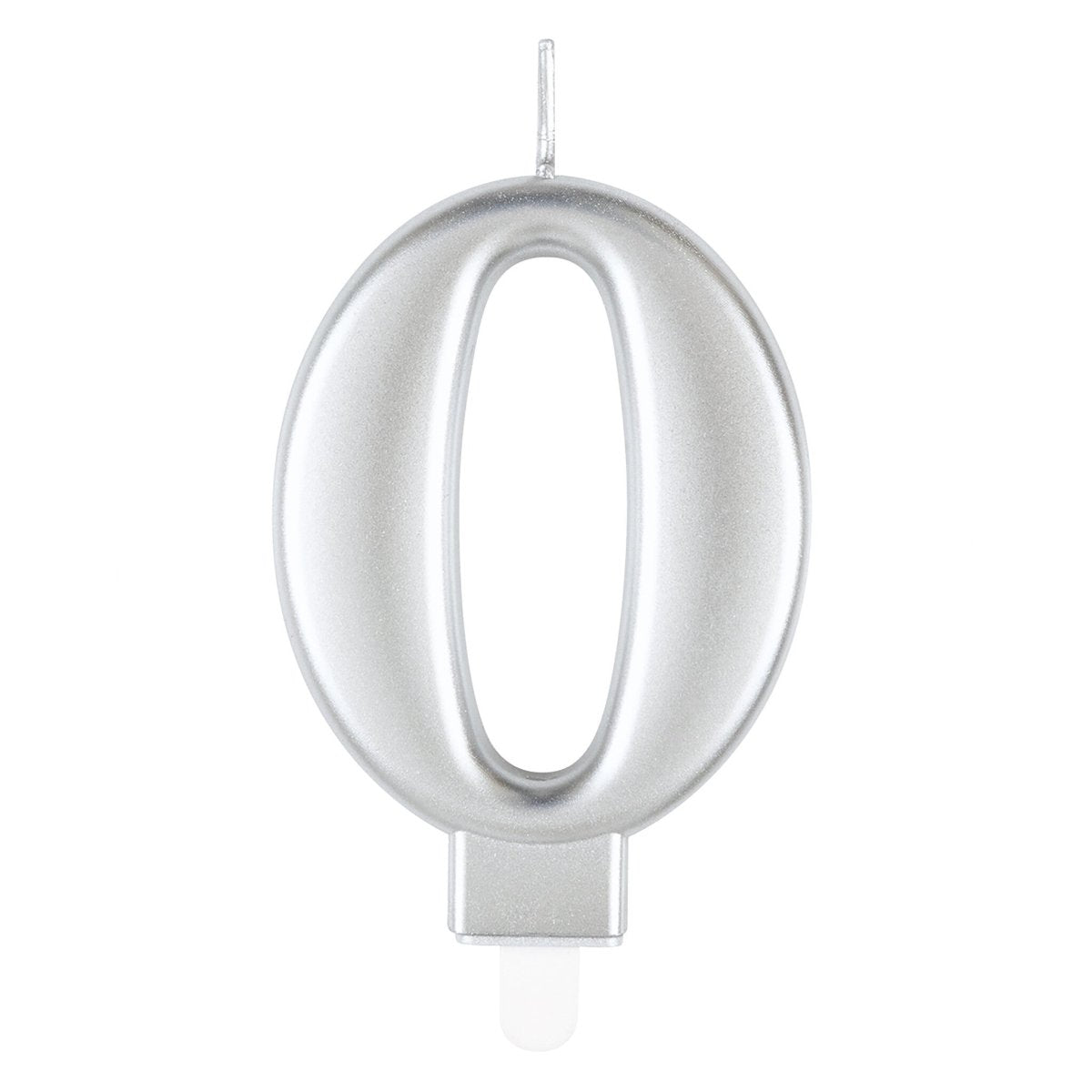Zawartość opakowania: metaliczna srebrna świeczka urodzinowa z numerem 0
