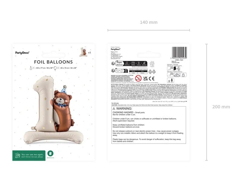 1 Rok Figurka Balon Niedźwiedź 81cm