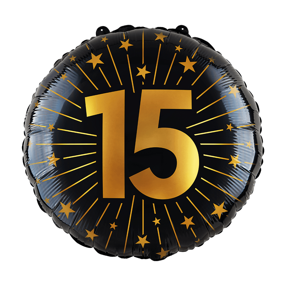 Balon helowy na 15 lat złoto-czarny pusty 45 cm
