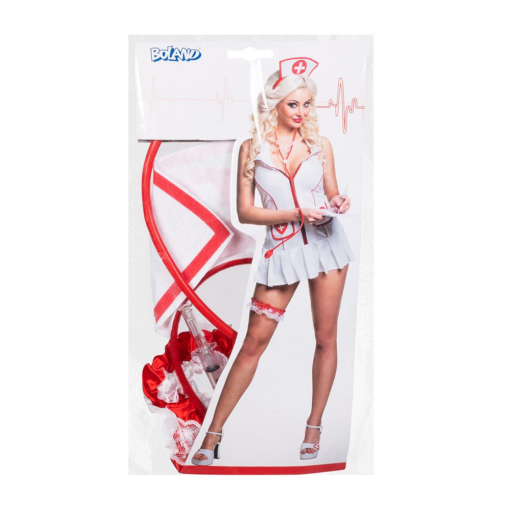 Ilość: 4-częściowa (tiara, stetoskop, podwiązka i strzykawka)