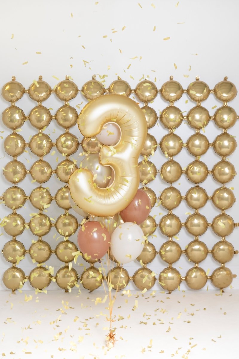 Balon foliowy na 3 urodziny złoty satynowy pusty 86 cm