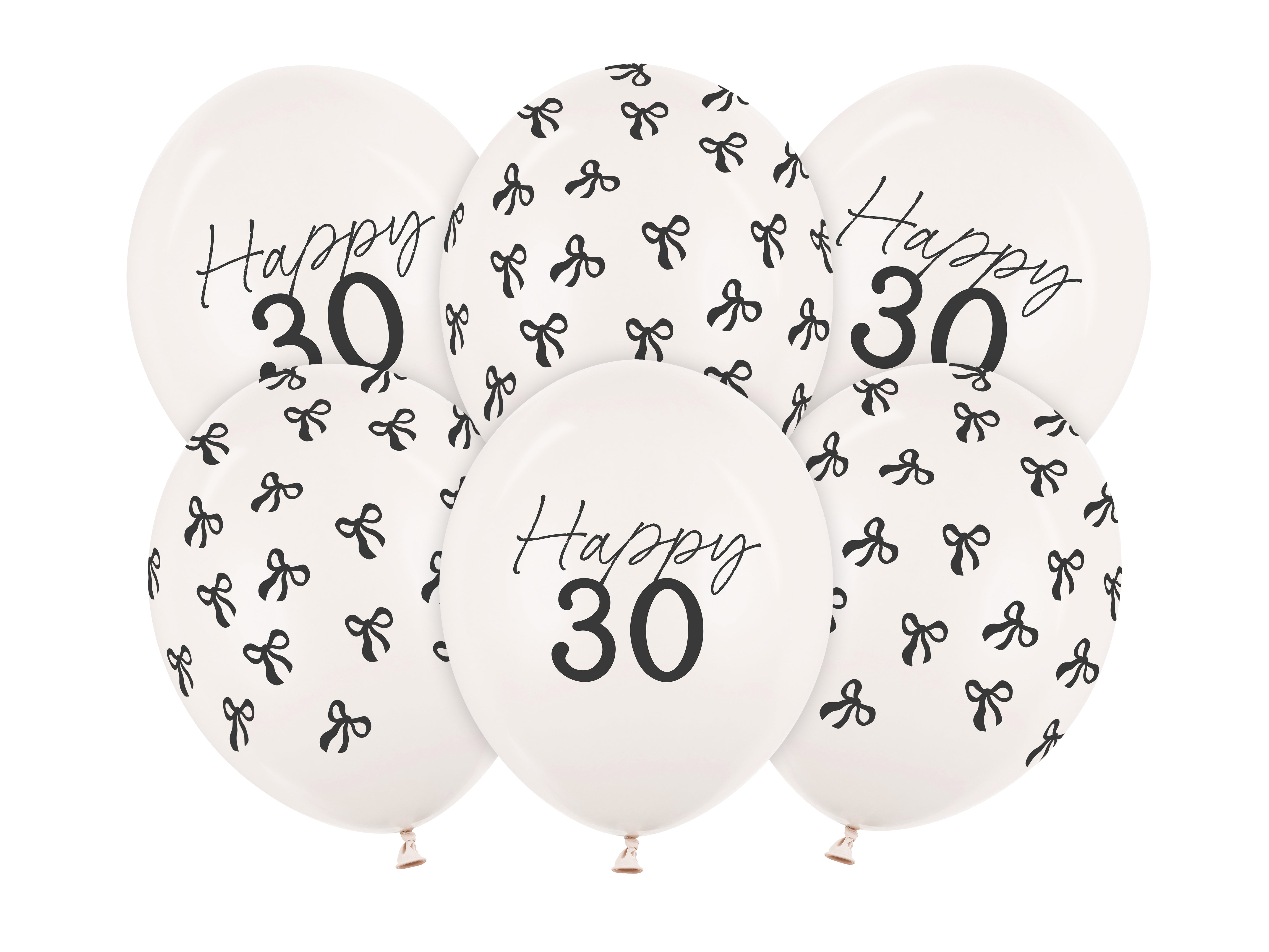 Balony na 30 lat Czarno-biała kokarda 30 cm 6 szt