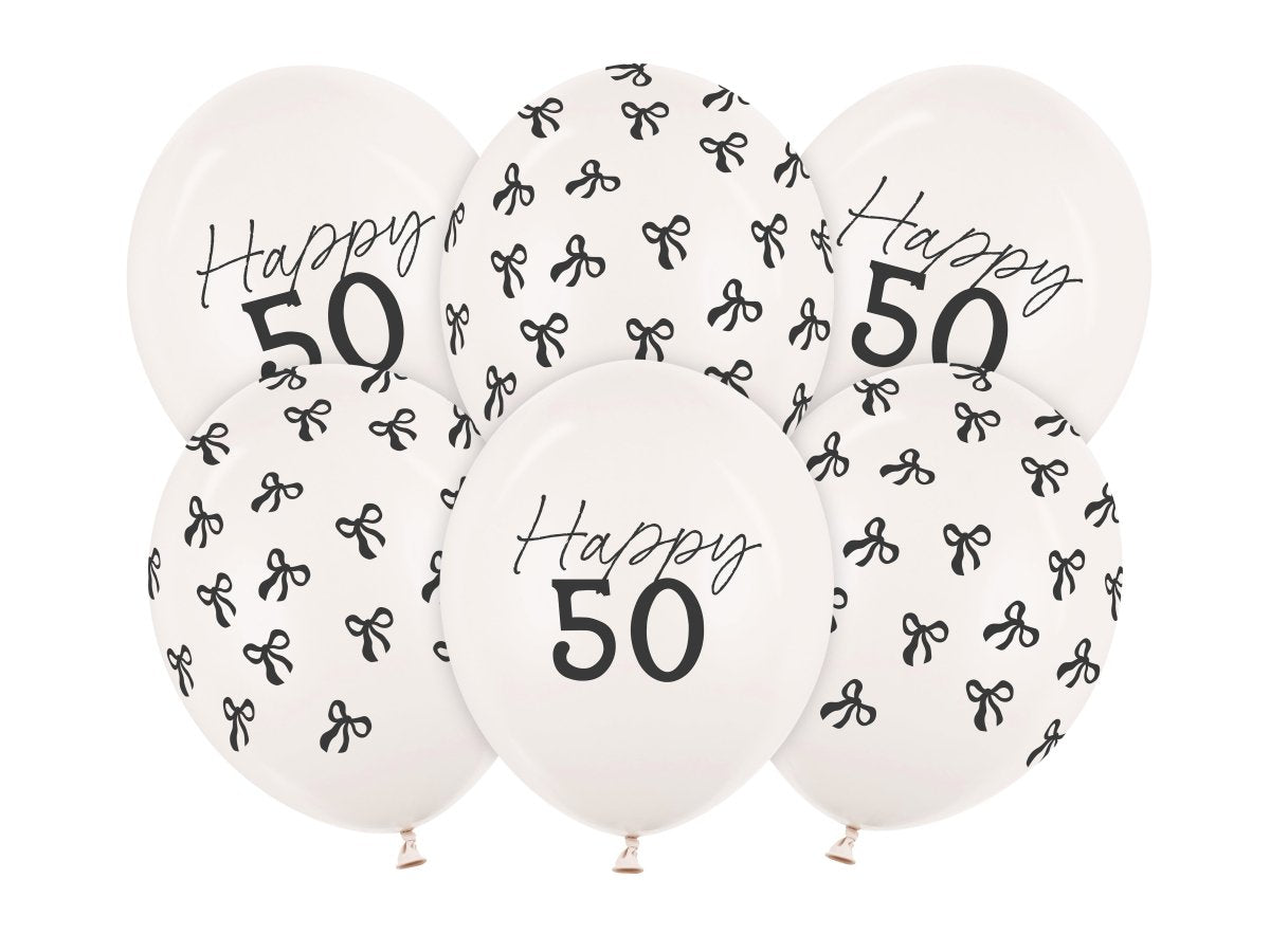 Balony na 50 lat Czarno-biała kokarda 30 cm 6 szt