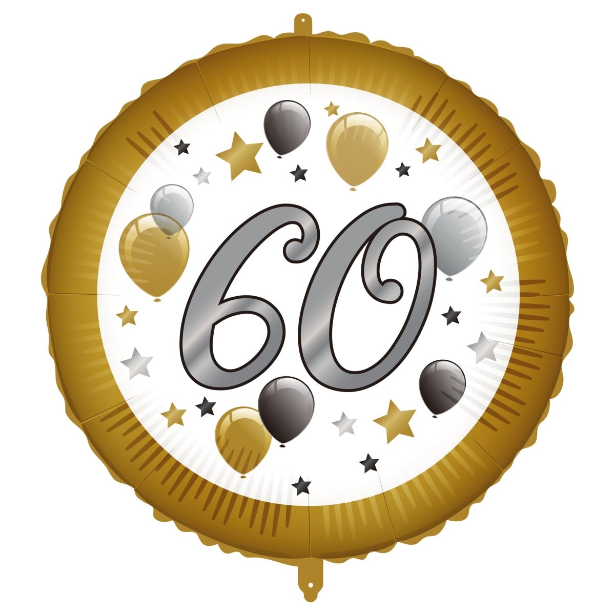 Opakowanie zawiera 1 pusty balon z helem na 60 lat o średnicy 46 cm, wykonany z folii. Nadaje się do powietrza i helu.