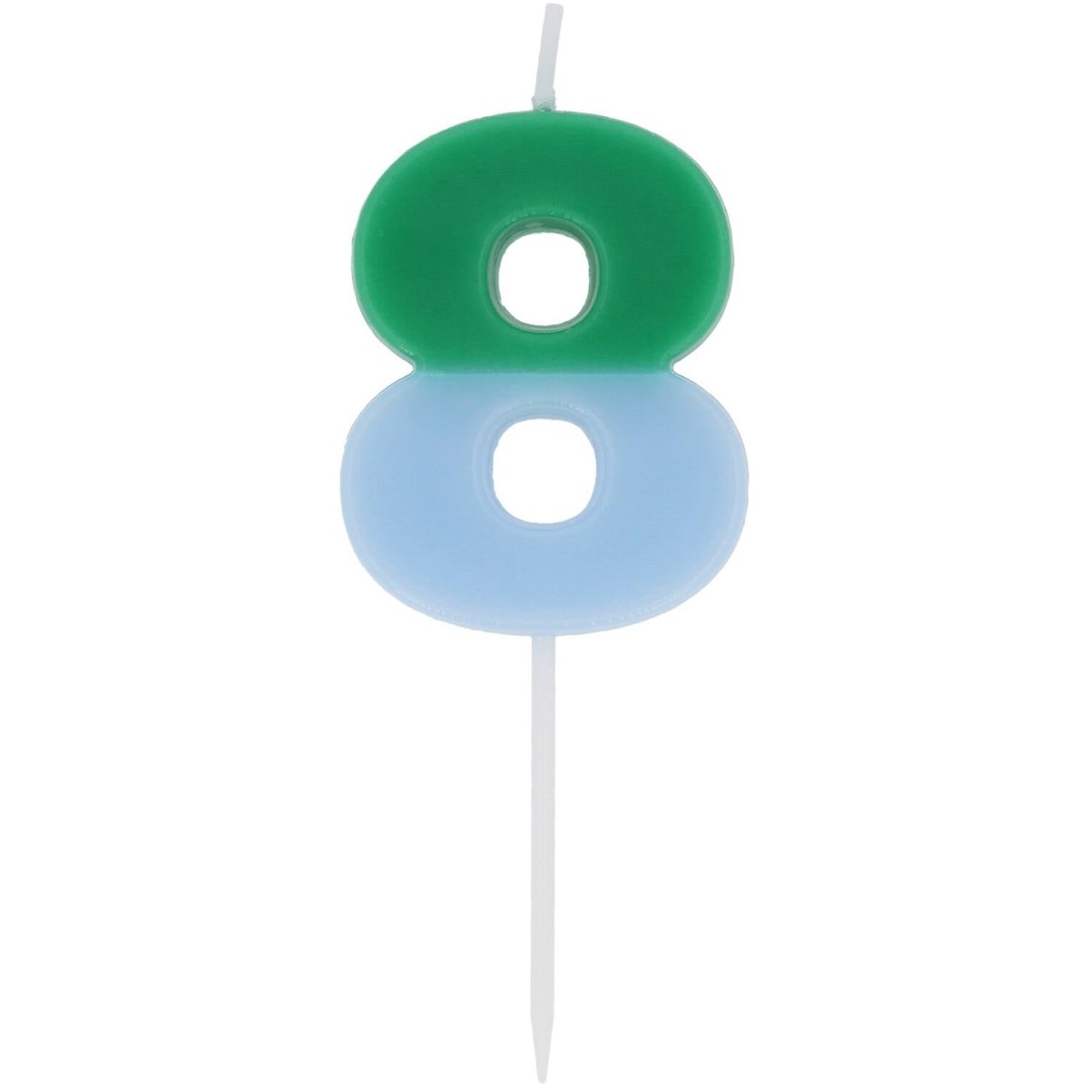 Jak świętowanie na torcie! Świeczka - Stripetastic - Numer 8. Zawartość: 1 świeczka z numerem. Do wykorzystania na przykład podczas następujących przyjęć/imprez okolicznościowych: Urodziny, Przyjęcie dla dzieci, Rocznica. Ta świeczka ma kształt cyfry "8". Górna część jest ciemnofioletowa, a dolna jasnoróżowa. Świeczka ma około 5 cm wysokości i 8 mm grubości. Całkowita długość świecy (wraz z nakłuwaczem, bez knota) wynosi około 9 cm. Ten artykuł jest wykonany z wosku.