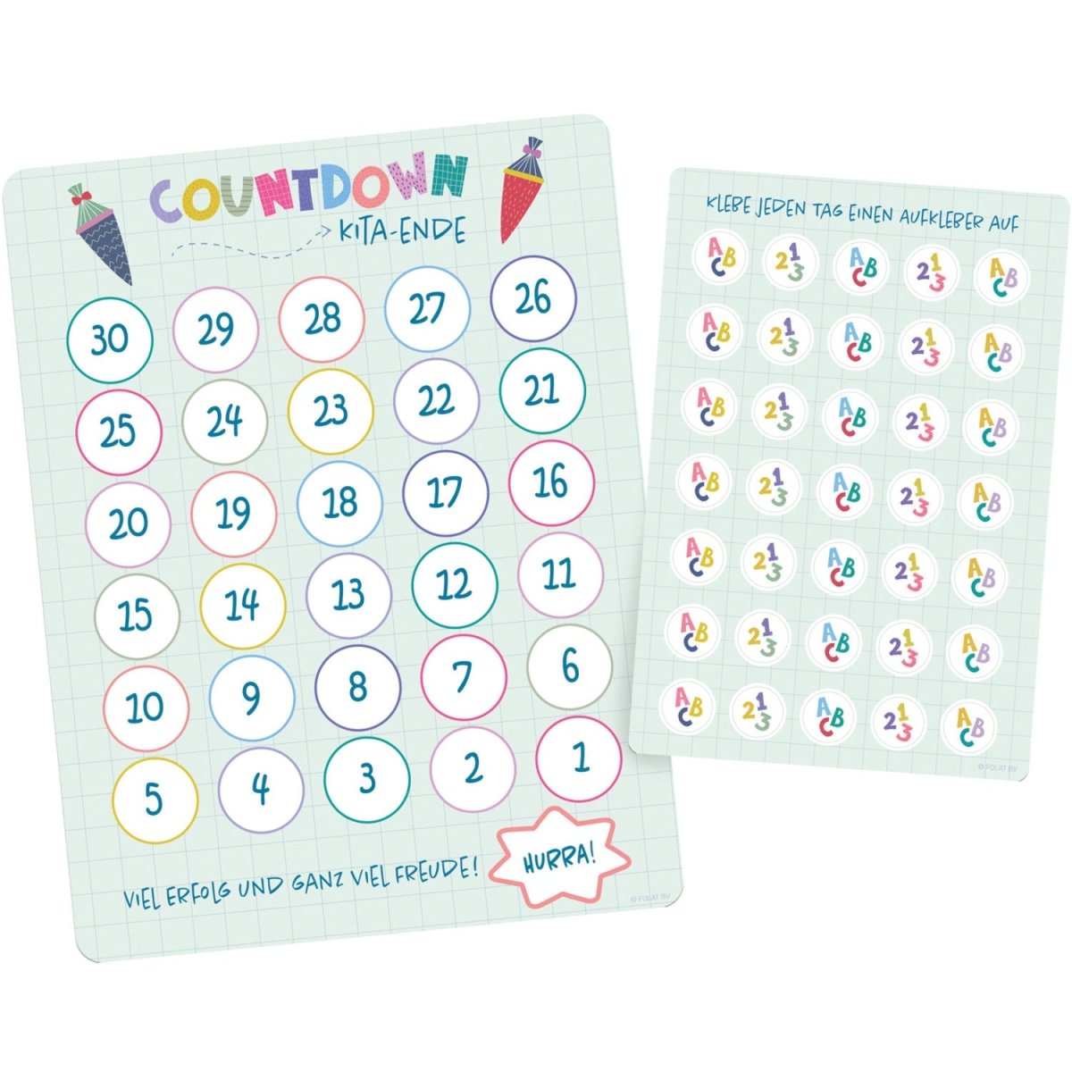 Zawartość: 1 kalendarz z odliczaniem i 1 arkusz naklejek