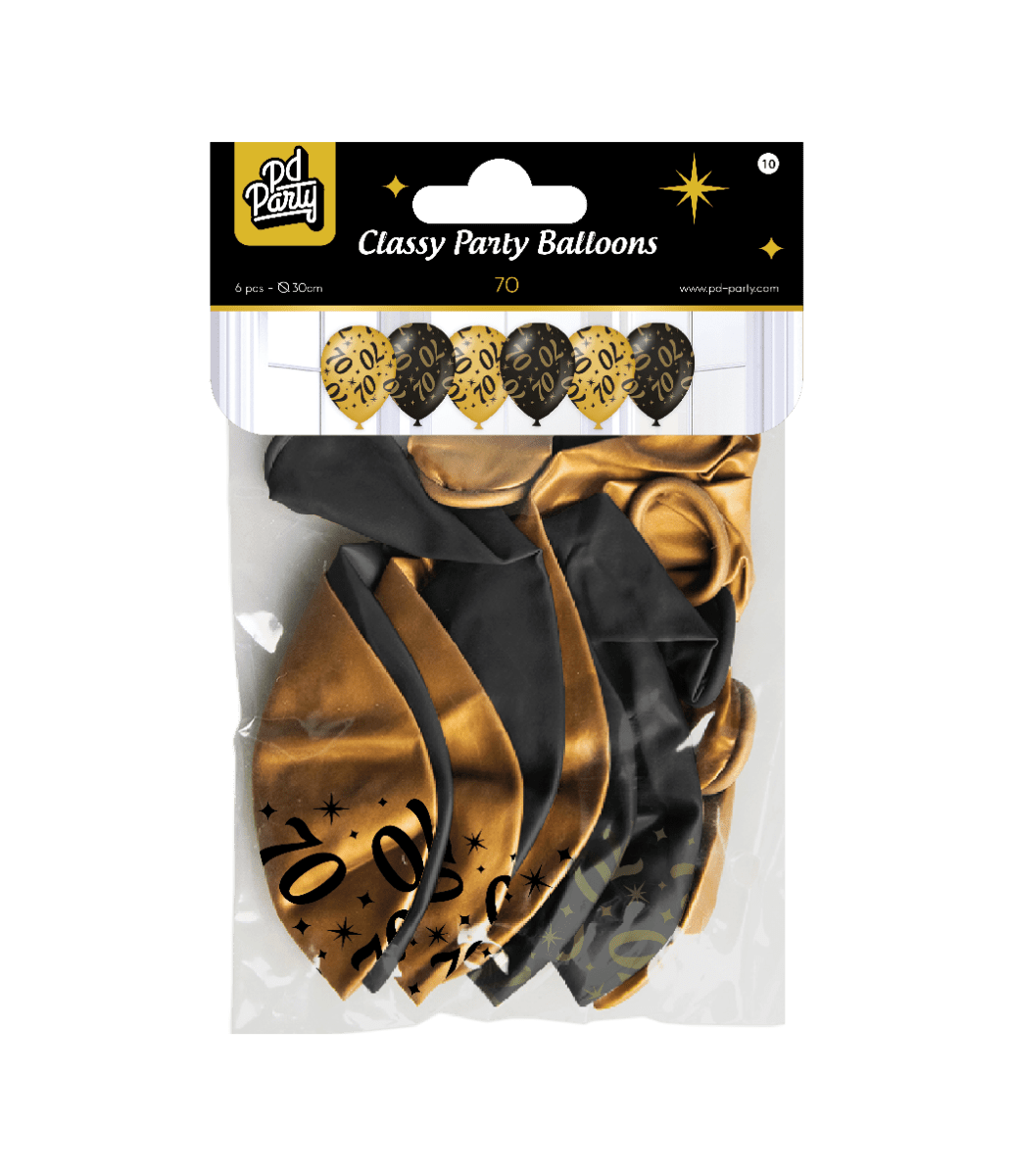 Balony 70 lat złoto czarne 30cm 6szt