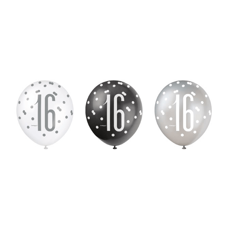 Zawartość opakowania:Balony 16 Years Dots Black 30cm 6szt