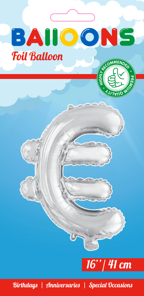 Balon foliowy Euro Sign Silver 41 cm ze słomką