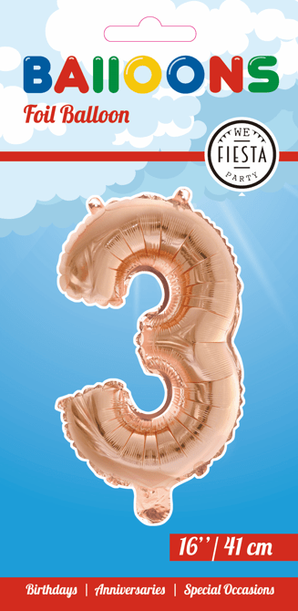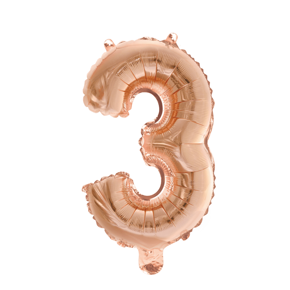 Balon foliowy Figurka 3 różowe złoto 41 cm ze słomką