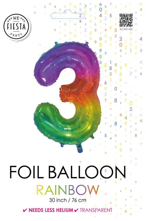 Balon foliowy figura 3 tęczowy przezroczysty 66cm