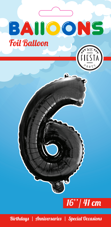 Balon foliowy Figurka 6 Czarny 41 cm ze słomką