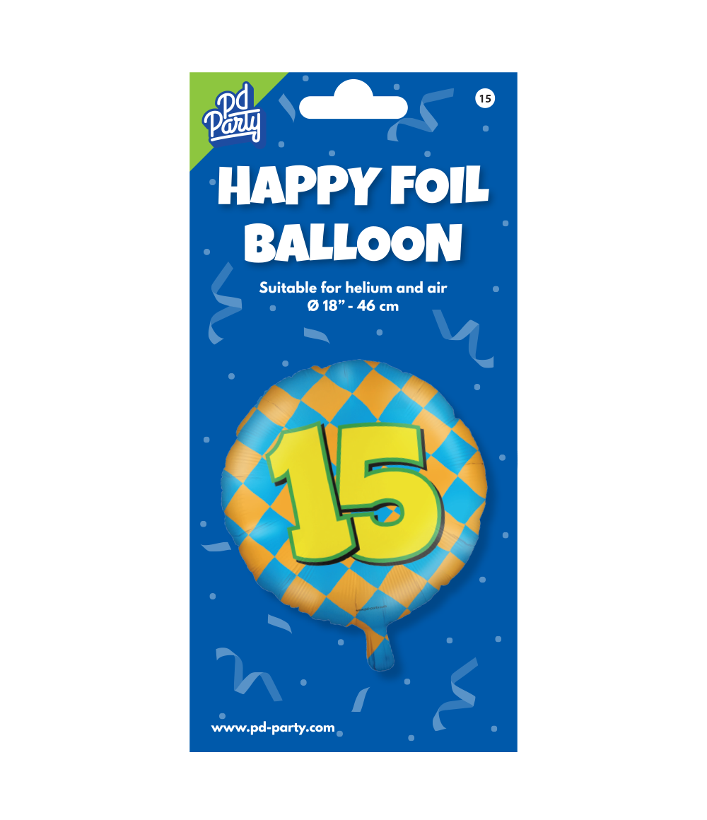 Balon helowy 15 lat kolorowy pusty 46 cm