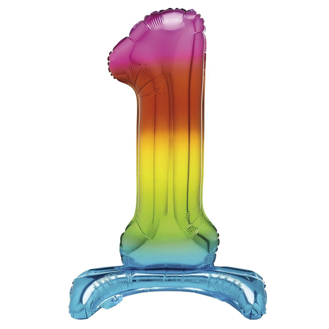 Balon z tęczową figurką na 1 rok ze standardem 76 cm