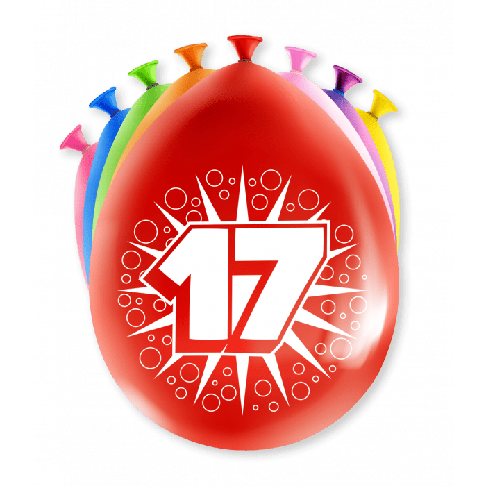 Balony 17 lat wielokolorowe 30 cm 8 szt