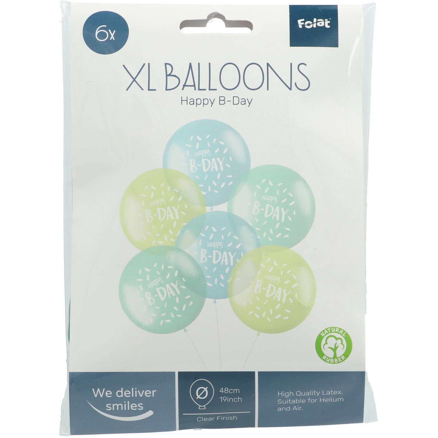 Balony XL Pastel 'Happy B-day' Blue 48cm - 6 szt. Zawartość: 6 balonów lateksowych. Kolor: wielokolorowy. Na przykład do wykorzystania podczas następujących imprez/okazji: Przyjęcie dla dzieci i Urodziny. Każdy balon mierzy 19 cali/48 cm. Artykuł jest wykonany z lateksu.