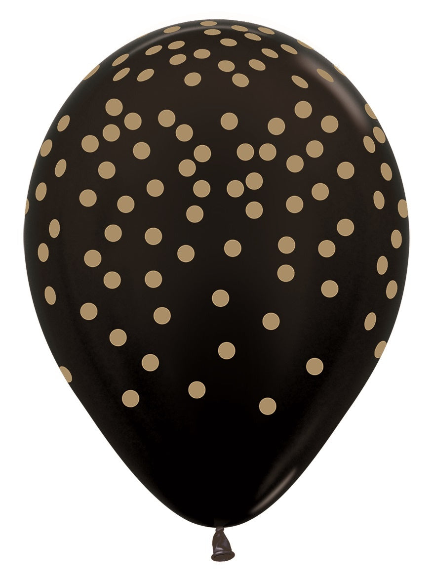 Balony Konfetti Złoty Nadruk Metaliczny Czarny 30cm 25szt