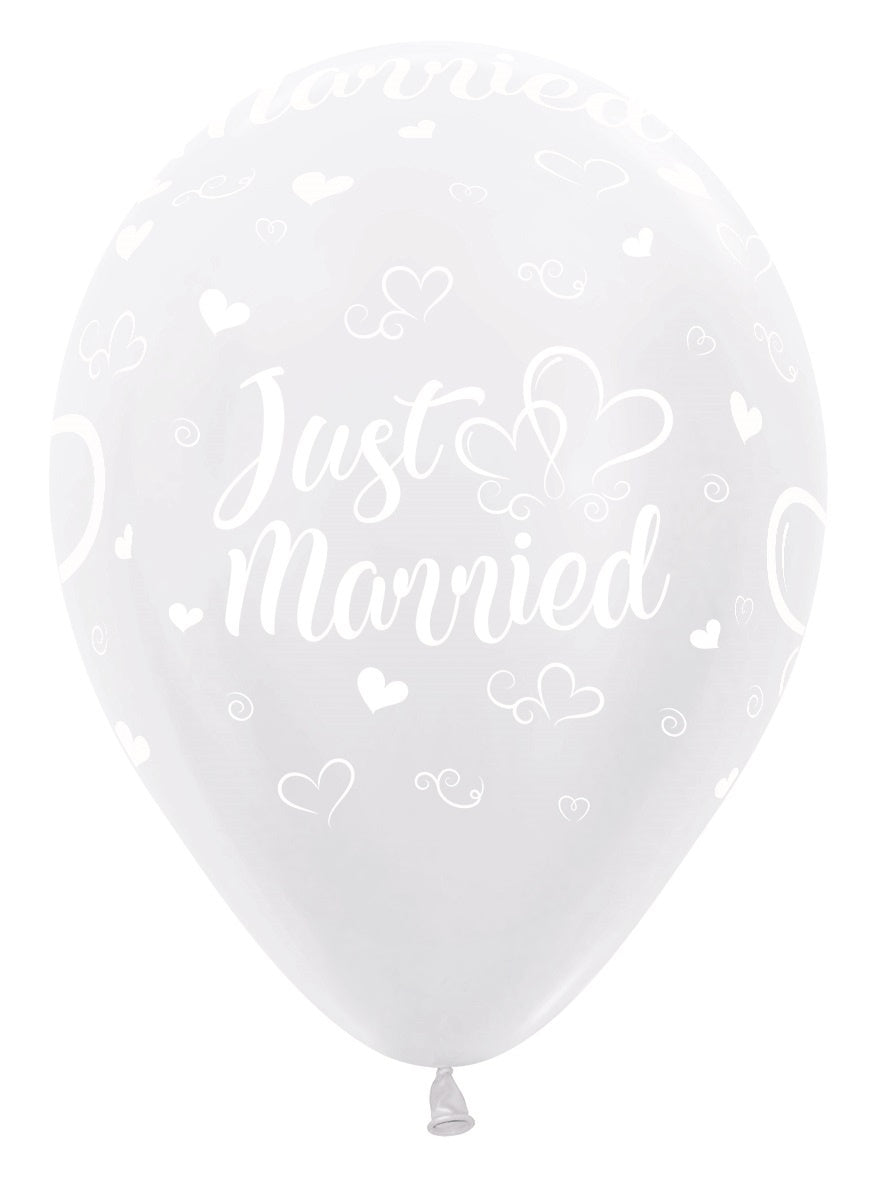Balony Just Married Serca Perłowe Białe 30cm 25szt