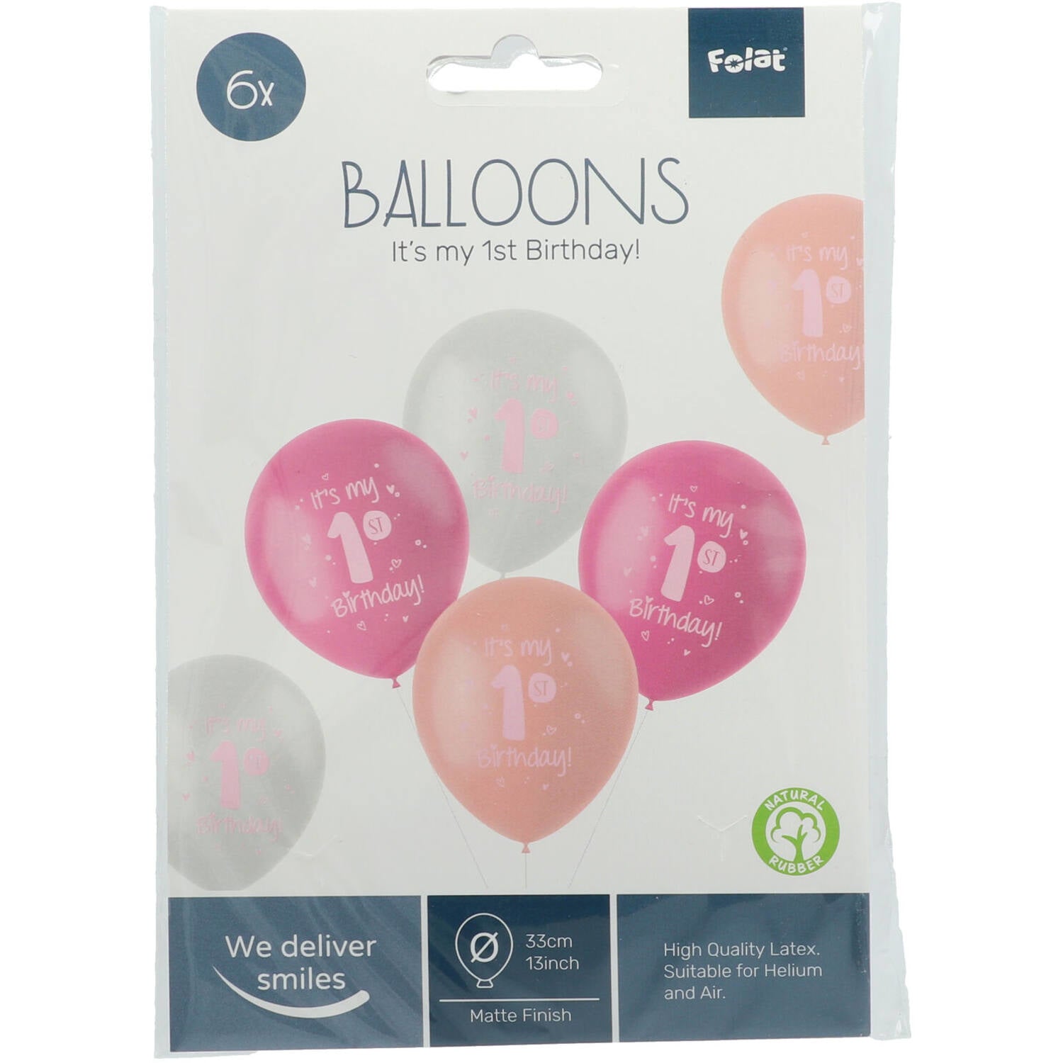 Balony It's My 1St Birthday Pink 33cm 6szt