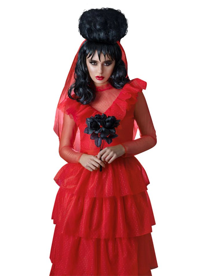 Ożyw kultowy wygląd Lydii dzięki temu kostiumowi panny młodej Beetlejuice. Rozpoznawalny i klimatyczny kostium idealny na Halloween, imprezy tematyczne lub cosplay.