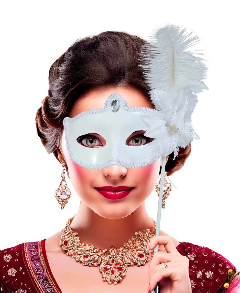 Ta biała maska to przyciągający wzrok dodatek, idealny na imprezy kostiumowe, imprezy tematyczne lub Halloween. Wykonana z wytrzymałego PVC dla wygodnego i bezpiecznego dopasowania.