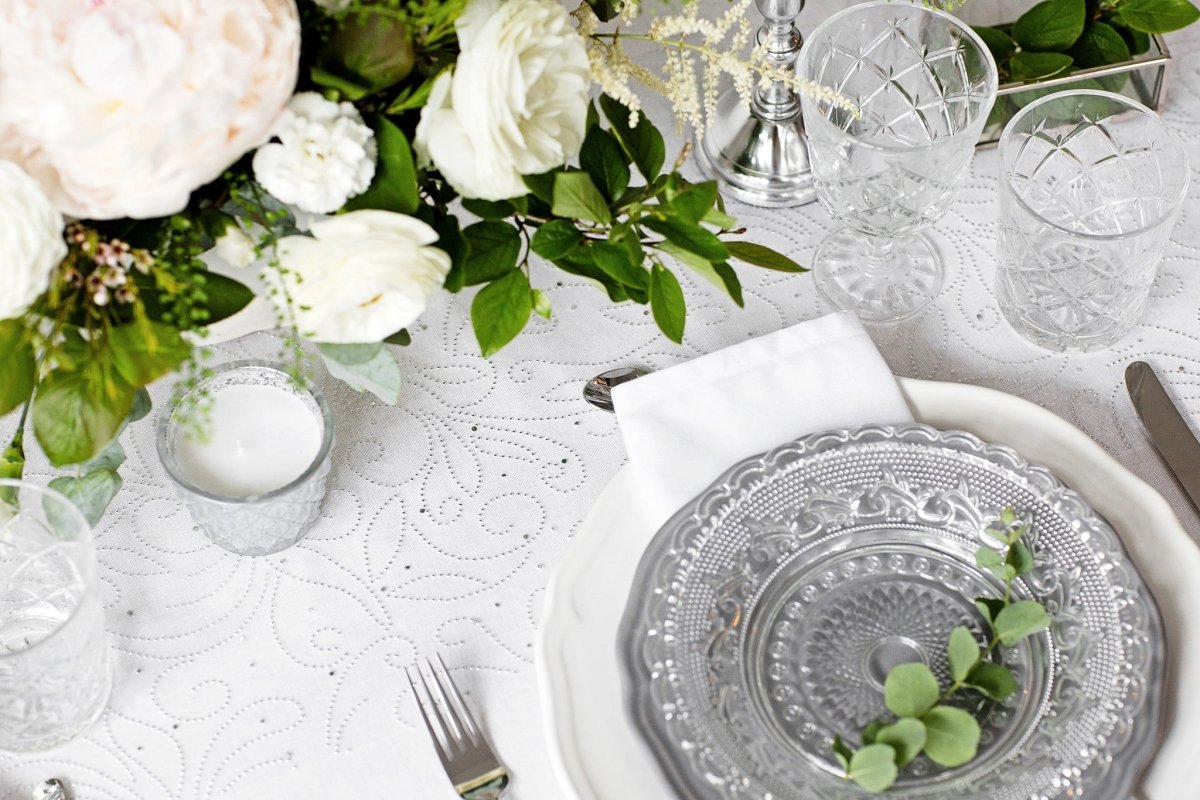 Zawartość: Organza drukowana, biała z jednostronnym nadrukiem pereł, rozmiar 0,48x9 metrów.