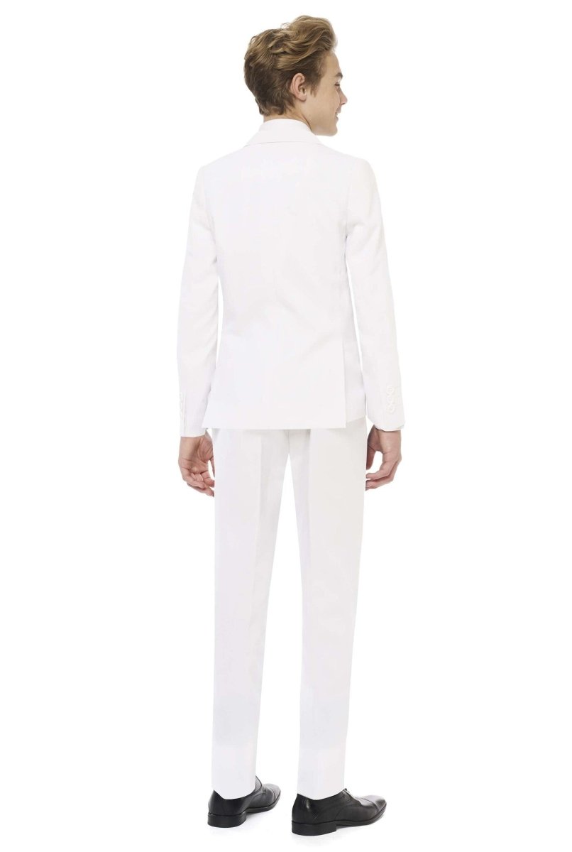 Odważysz się nosić białą odzież od stóp do głów? Świetnie! Biały garnitur chłopięcy to idealny strój, w którym zrobisz modowe wrażenie na specjalną okazję. I nie martw się o plamy, ponieważ ten garnitur można prać w pralce. Możesz więc bawić się w nim bez ograniczeń.