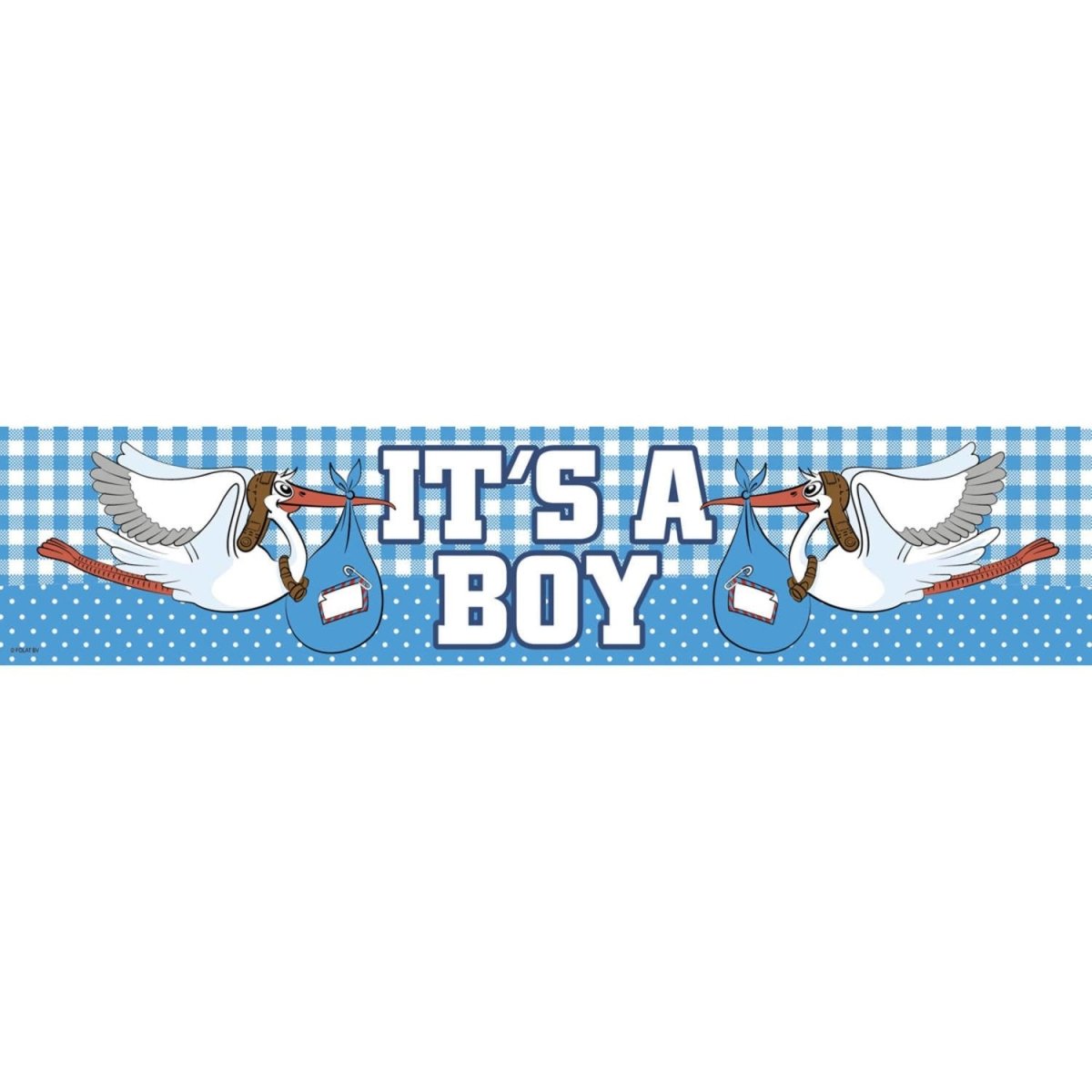 Birth Boy Foil Banner - 2,5 mtr x 11 cm. Zawartość: 1 baner. Kolor: niebieski. Do wykorzystania na przykład podczas następujących przyjęć/imprez okolicznościowych: Impreza tematyczna, Narodziny chłopca. Wymiary tego artykułu: 2,5 mtr x 11 cm. Ten artykuł jest wykonany z folii.