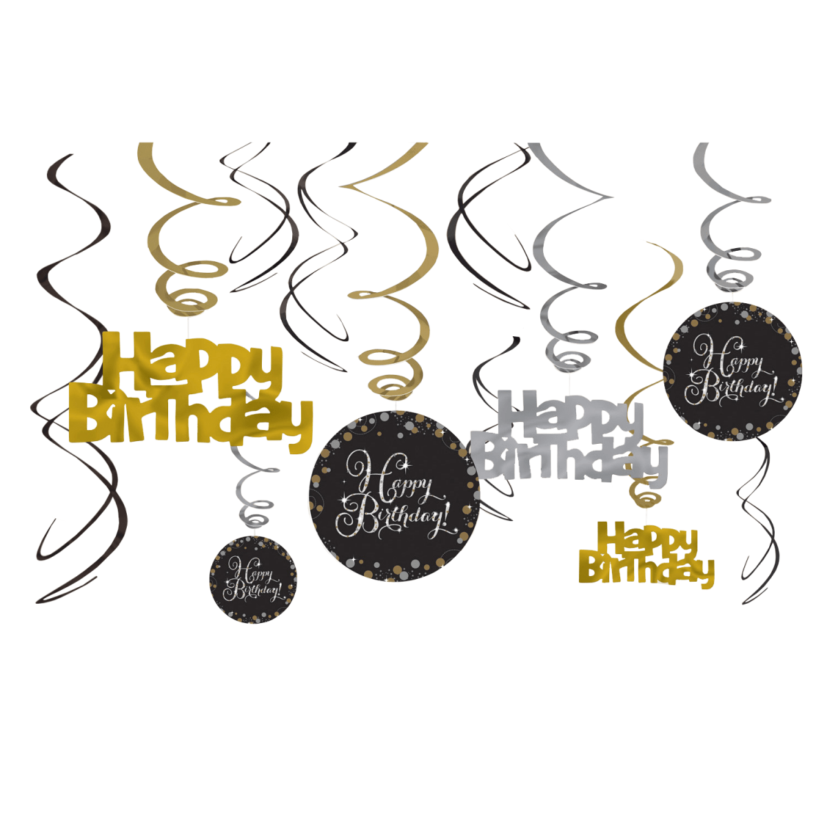 Dekoracja urodzinowa wisząca Happy Birthday Gold 61cm 12szt
