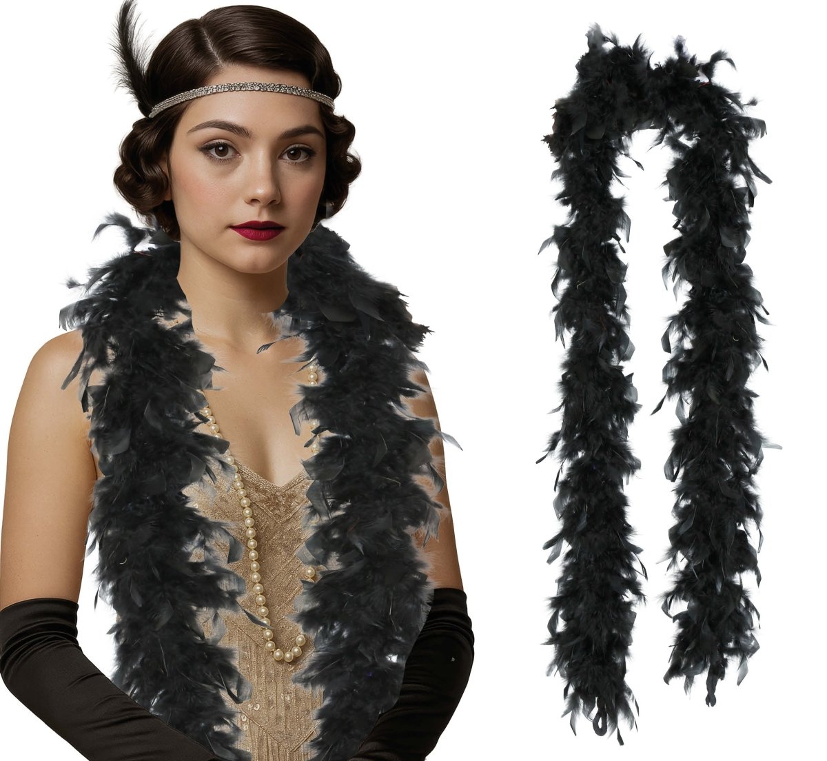 Dodaj stylu i klasy swojemu strojowi dzięki temu czarnemu boa z piór. Idealne na imprezy, gale, wieczory tematyczne, karnawały lub występy sceniczne. Boa jest lekkie, miękkie i natychmiast tworzy szykowny i świąteczny wygląd.