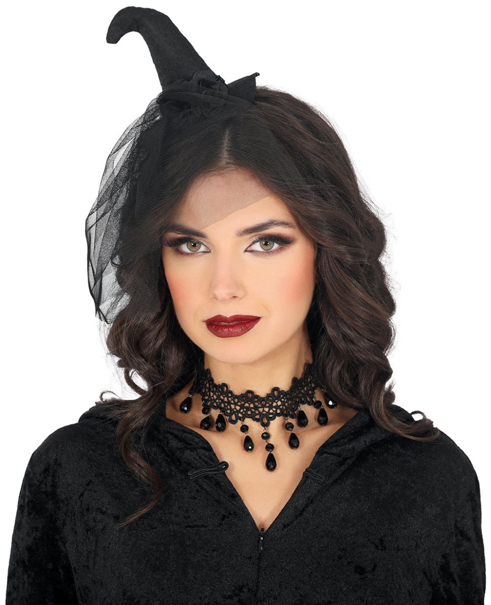 Czarna opaska do włosów Mini kapelusz czarownicy z welonem