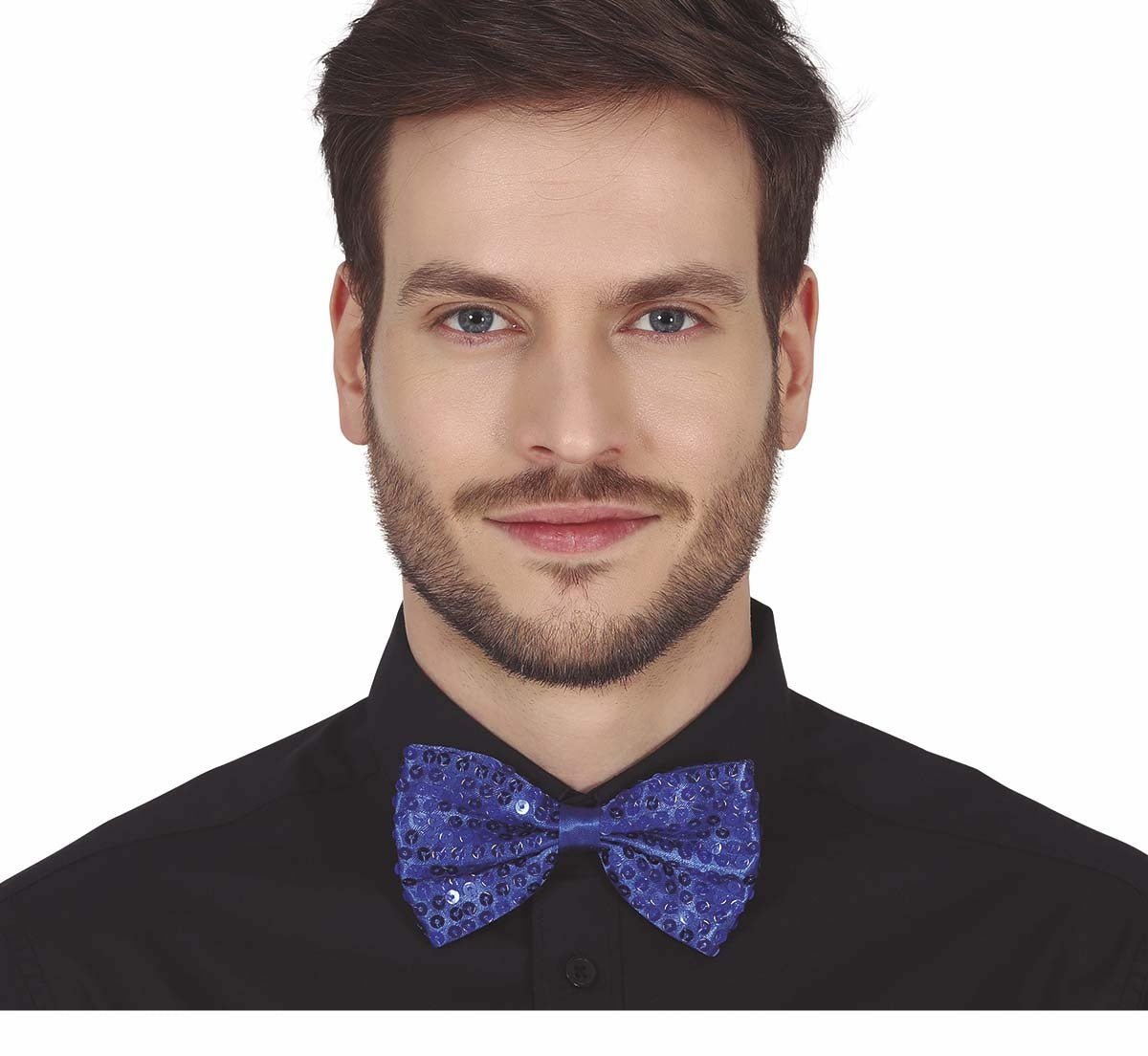 Niebieska kokarda z cekinami 12 cm