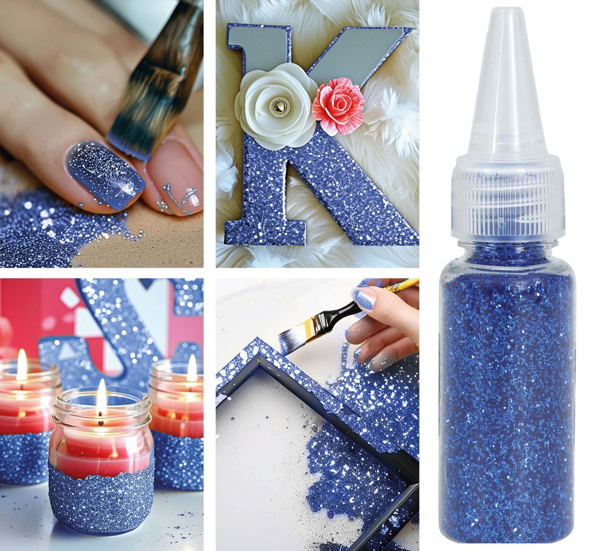 Ten niebieski brokat jest idealny do dodawania błyszczących akcentów do projektów rzemieślniczych, dekoracji imprezowych lub kreatywnych projektów. Drobny brokat tworzy promienny efekt na każdej powierzchni.