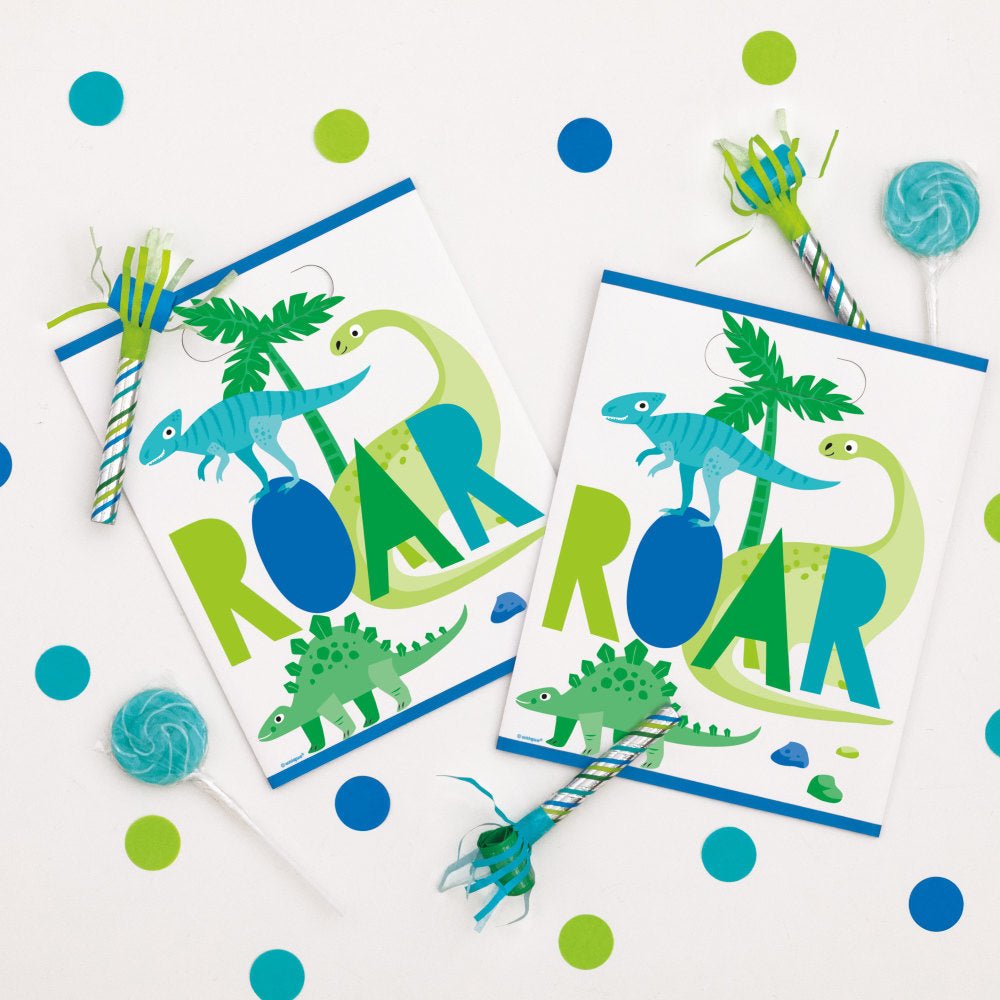 Niebieskie & Torebki imprezowe z zielonym dinozaurem 8szt