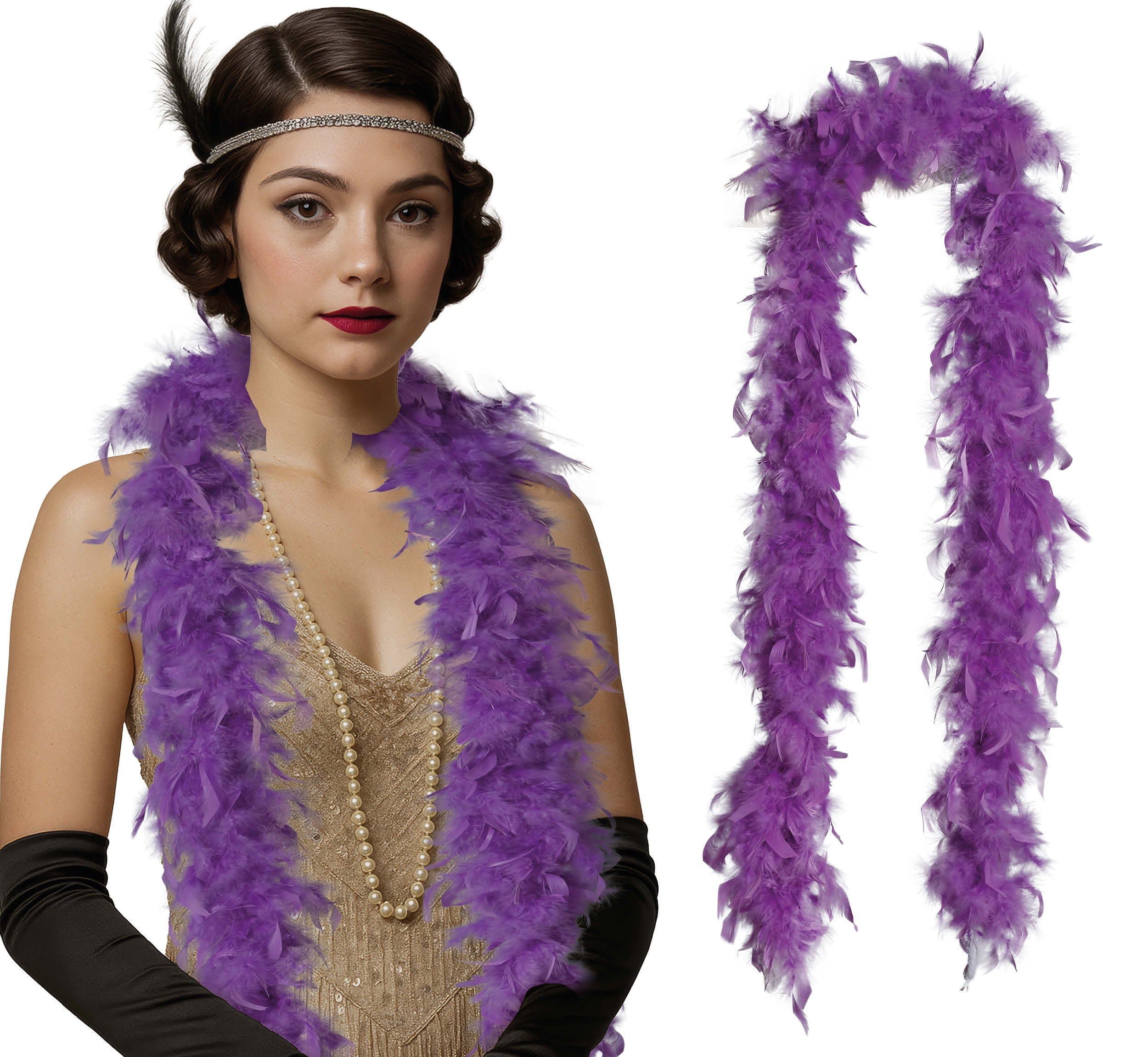 Dodaj odrobinę elegancji i koloru do swojego stroju dzięki temu fioletowemu boa z piór. Idealne na imprezy, wieczory tematyczne, karnawał lub występy sceniczne. Boa jest lekkie, miękkie i natychmiast tworzy stylowy i zabawny wygląd.