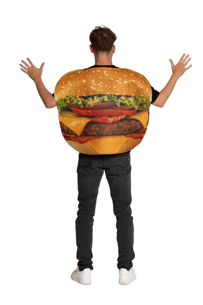 Przyciągnij uwagę dzięki temu zabawnemu kostiumowi hamburgera. Idealny na imprezy tematyczne, bale przebierańców, karnawał lub festiwale. Przyciągający wzrok design daje złudzenie gigantycznego hamburgera, a lekki materiał zapewnia komfort noszenia.
