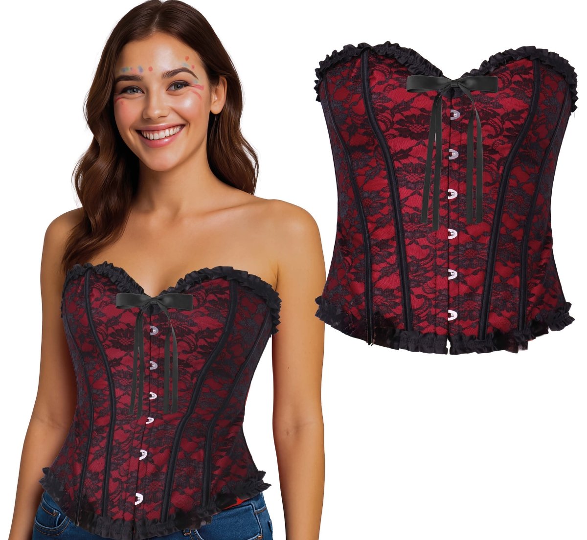Uzupełnij swój strój tym czerwono-czarnym gorsetem, idealnym na imprezy, cosplay, wieczory tematyczne lub stylowe wykończenie stylizacji. Wykonany z wygodnego poliestru i zaprojektowany tak, aby pięknie pasował do eleganckiej sylwetki.