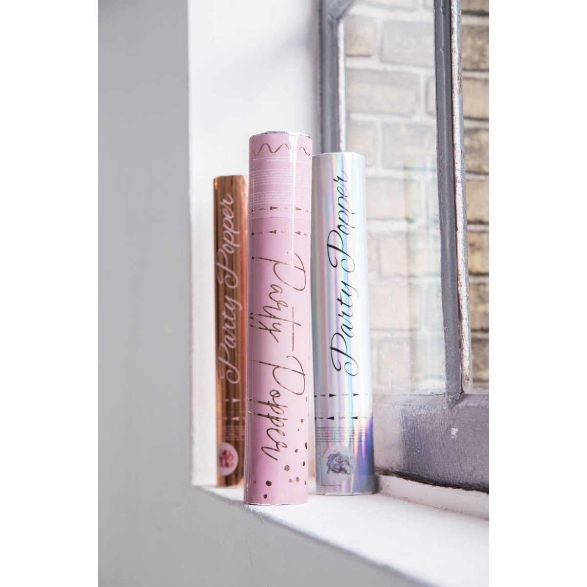 Konfetti Cannon Elegant Lush Blush - 28cm. Zawartość: 1 armatka konfetti z serpentynami. Kolor: różowy. Do wykorzystania na przykład podczas następujących przyjęć/imprez okolicznościowych: Urodziny, Przyjęcie dla dzieci. Wymiary tego artykułu: 28 cm. Artykuł jest wykonany z folii.