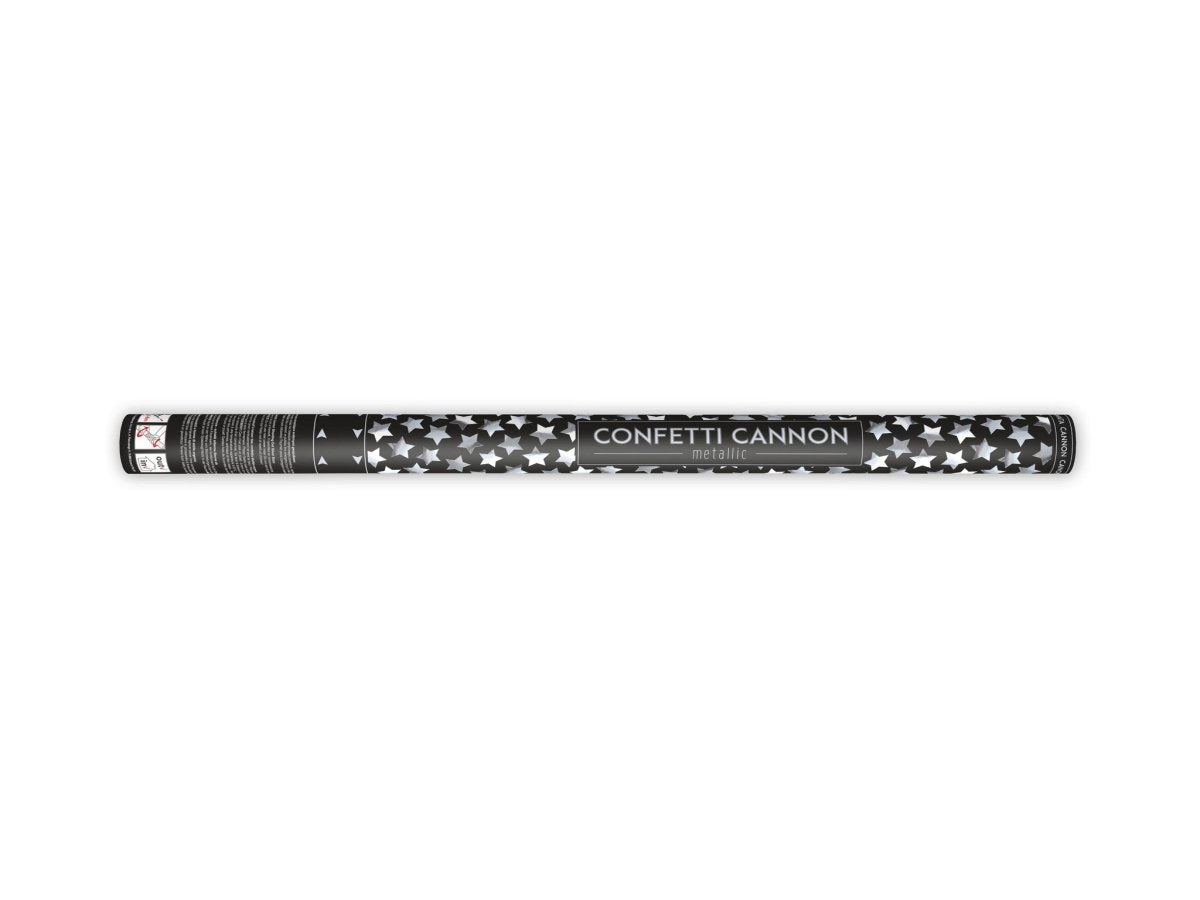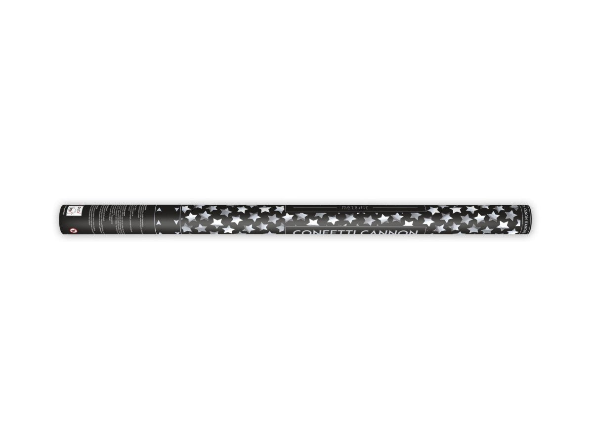 Zawartość: Konfetti Cannon wystrzeliwujące metaliczne gwiazdki, srebrne, długość 80 centymetrów.