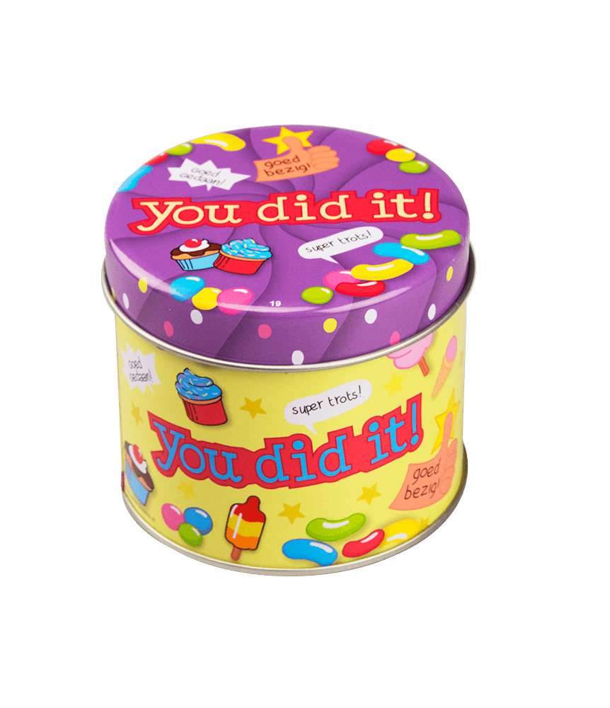 Zawartość opakowania: puszka cukierków You Did It! 9cm