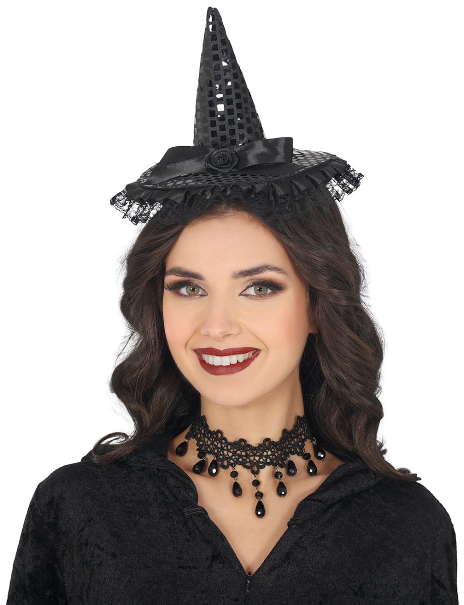 Czarna opaska do włosów Mini Kapelusz Czarownicy