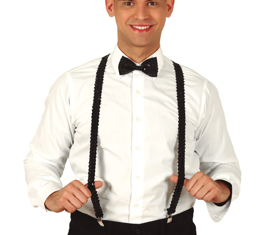Czarne szelki z cekinami dla mężczyzn 72 cm