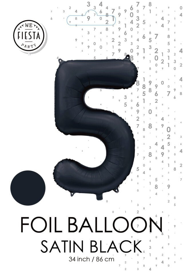 Czarny balon z cyfrą 5 lat, połysk 86 cm