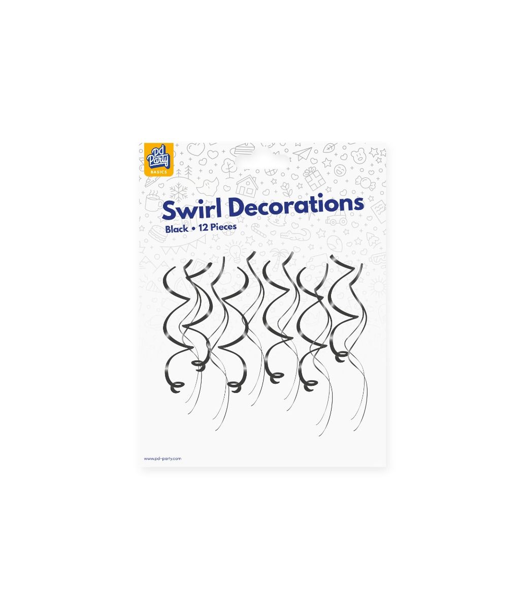 Dekoracje w kształcie wirów w kolorze czarnym są idealnym dodatkiem do każdego rodzaju imprezy. Ze względu na zastosowany kolor czarny, te wiry są również idealne do łączenia z naszymi innymi dekoracjami imprezowymi, takimi jak flagi, balony i kurtyny imprezowe. W opakowaniu znajduje się 12 pojedynczych wirów.