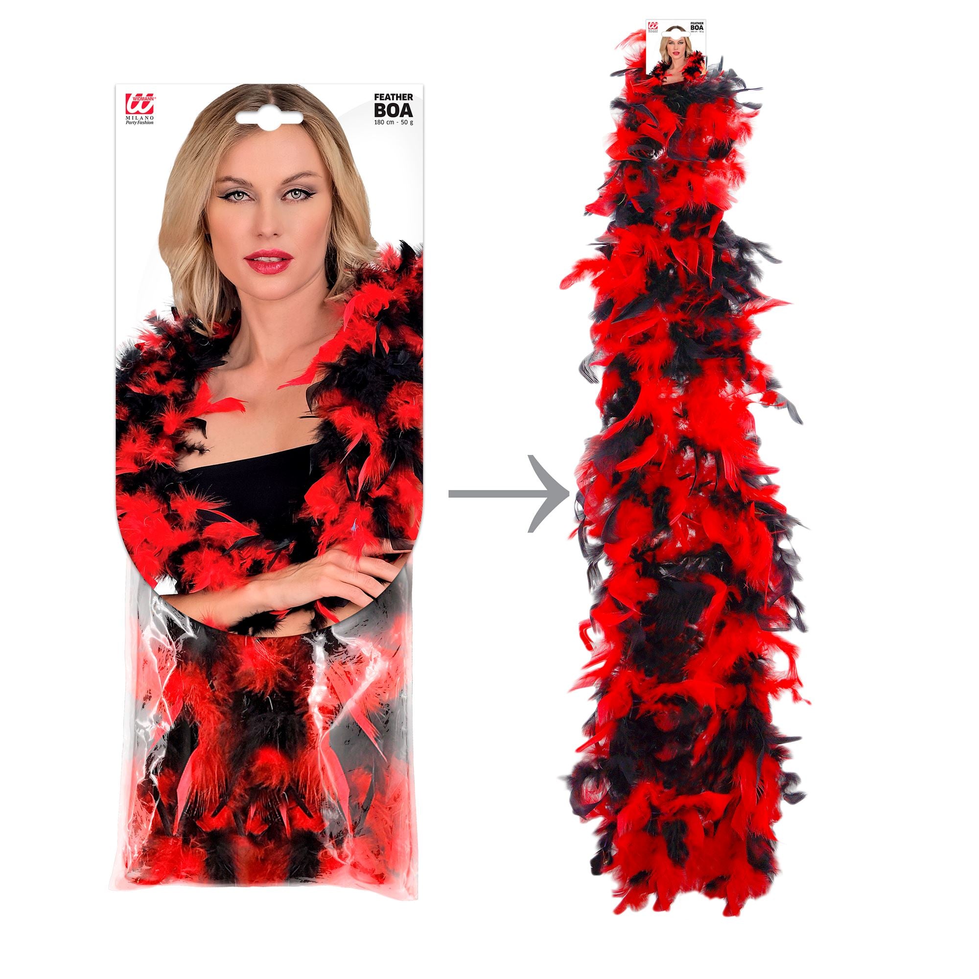 Dodaj szyku swojemu strojowi dzięki temu przyciągającemu wzrok czerwono-czarnemu boa wykonanemu z miękkich piór. Idealny na imprezy, karnawały lub wieczory tematyczne, gdzie nie może zabraknąć odrobiny blasku i dramatyzmu.