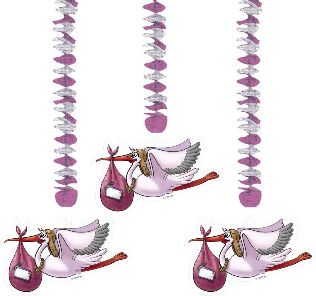 Dekoracja wisząca Birth Girl - 3 sztuki. Zawartość: 3 sztuki wiszących dekoracji. Do wykorzystania na przykład podczas następujących przyjęć/imprez okolicznościowych: Birth Girl. Długość artykułu: 75 cm.
