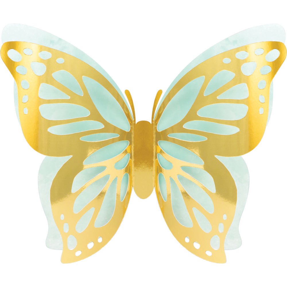 Ten zestaw dekoracji ściennych 3D, zawierający 3 motyle, ożywi każde pomieszczenie. Motyle układają się w trójwymiarowy wzór, nadając im trzepoczący wygląd po przymocowaniu do ściany. Piękny element centralny nad tortem lub stołem z prezentami.
