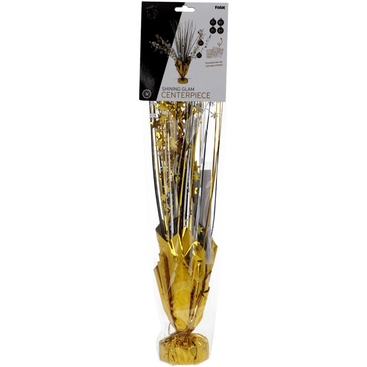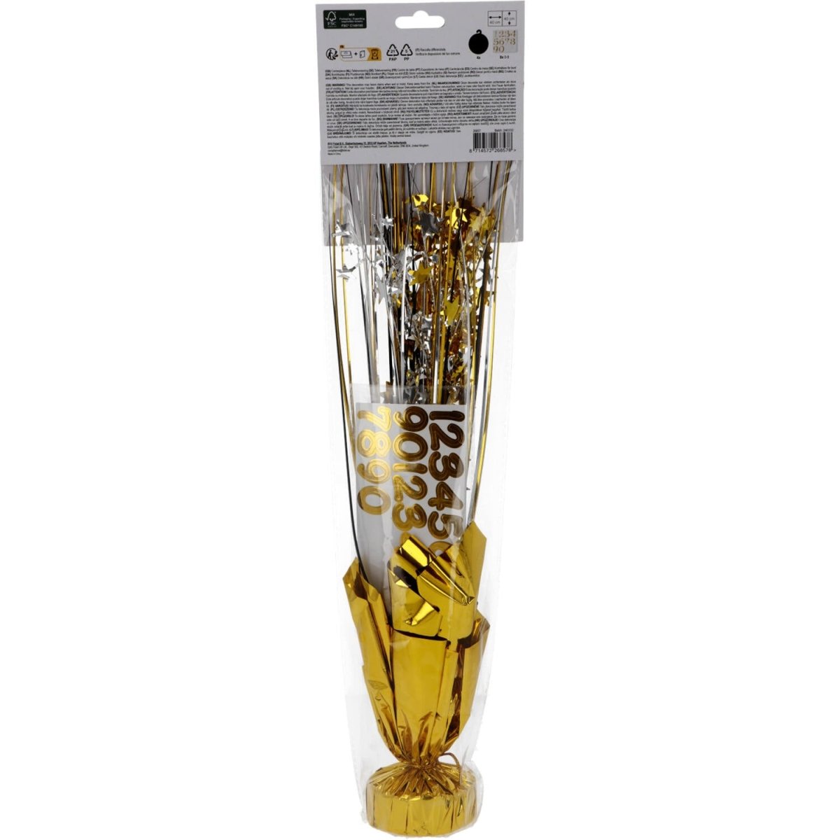 Centralny punkt imprezy! Fontanna dekoracyjna - Shining Glam. Zawartość: 1 fontanna dekoracyjna. Do wykorzystania na przykład podczas następujących przyjęć/okazji: Urodziny. Rozkręć imprezę dzięki tej fontannie dekoracyjnej w kolorze złotym, czarnym i srebrnym. Na fontannie możesz samodzielnie zawiesić 4 dołączone zawieszki (ok. 6 cm): 2x "HAPPY BIRTHDAY" i 2x bez tekstu. Na wszystkich z nich możesz nakleić swój własny wiek za pomocą dołączonych błyszczących złotych naklejek: 8 x 0 do 9 o wysokości około 3 cm. Wszystkie zawieszki są drukowane dwustronnie i wykonane z papieru. Podstawa tej dekoracyjnej fontanny zawiera cement. Ten przedmiot jest wykonany z folii i papieru.