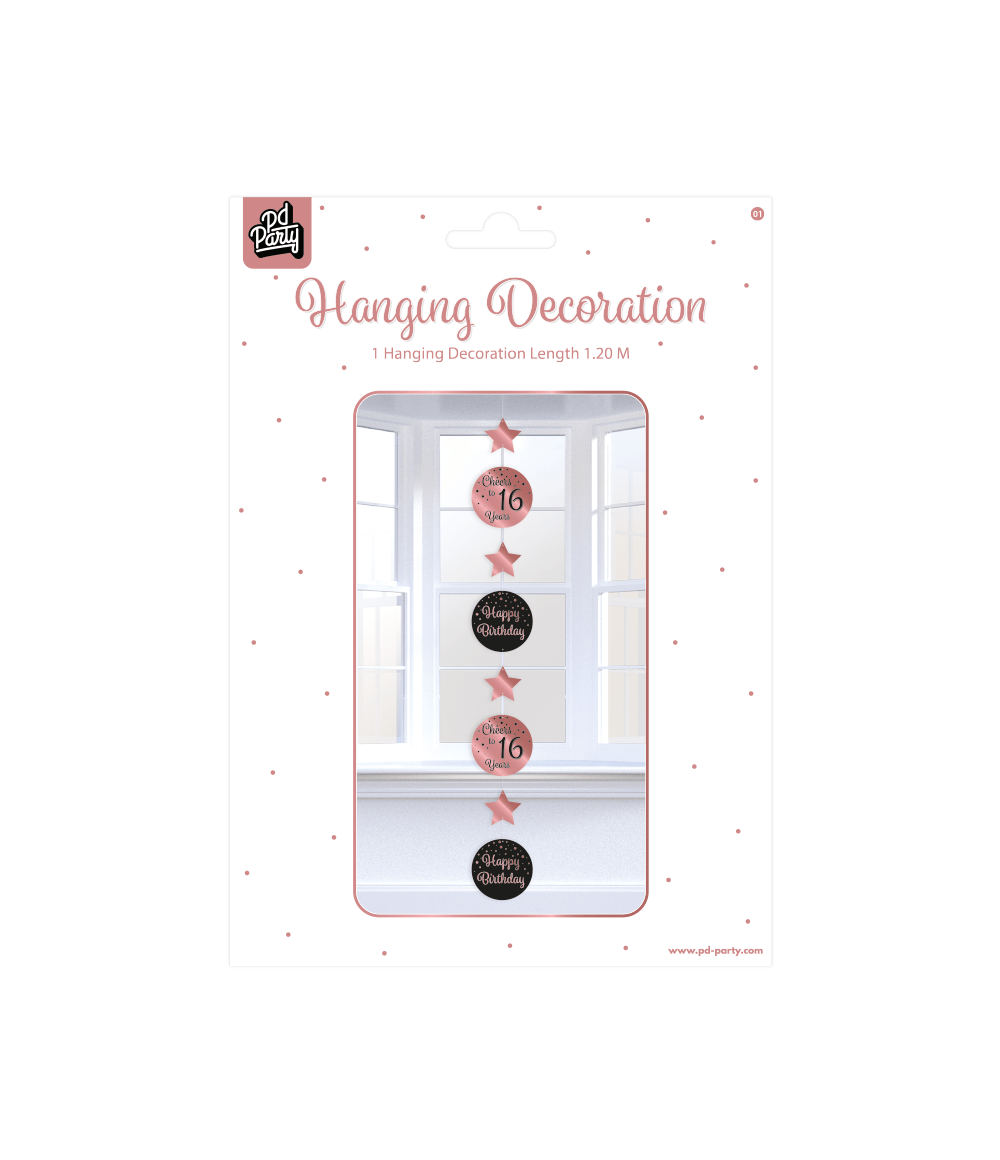 Dekoracja wisząca 16 lat różowa czarna 20,5 cm